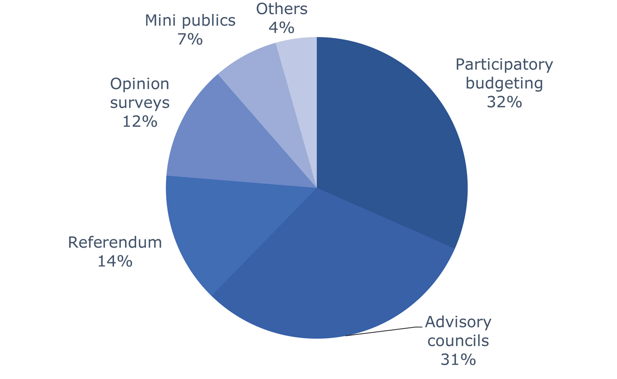 - While slight differences in meaning exist, this paper uses the terms ‘participatory mechanisms’ and ‘participatory tools’ interchangeably to refer to various forms of citizen participation in decision-making. ⮭