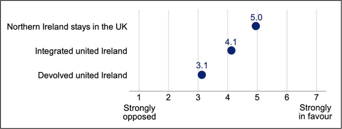 - Participants in the minipublic were not forced to choose a preference between the three options. Instead, as Figure 2 summarises, they indicated their post-deliberative level of support for each option. The status quo option (of Northern Ireland remaining in the UK) received the highest level of support. ⮭